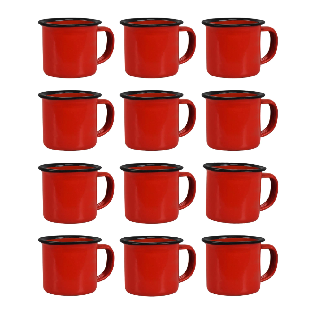 Transforme sua mesa com esse lindo kit de 12 canecas esmaltadas vermenho estilo ágata. Ideal para servir café, chá, caldos e porções individuais com muito mais personalidade.